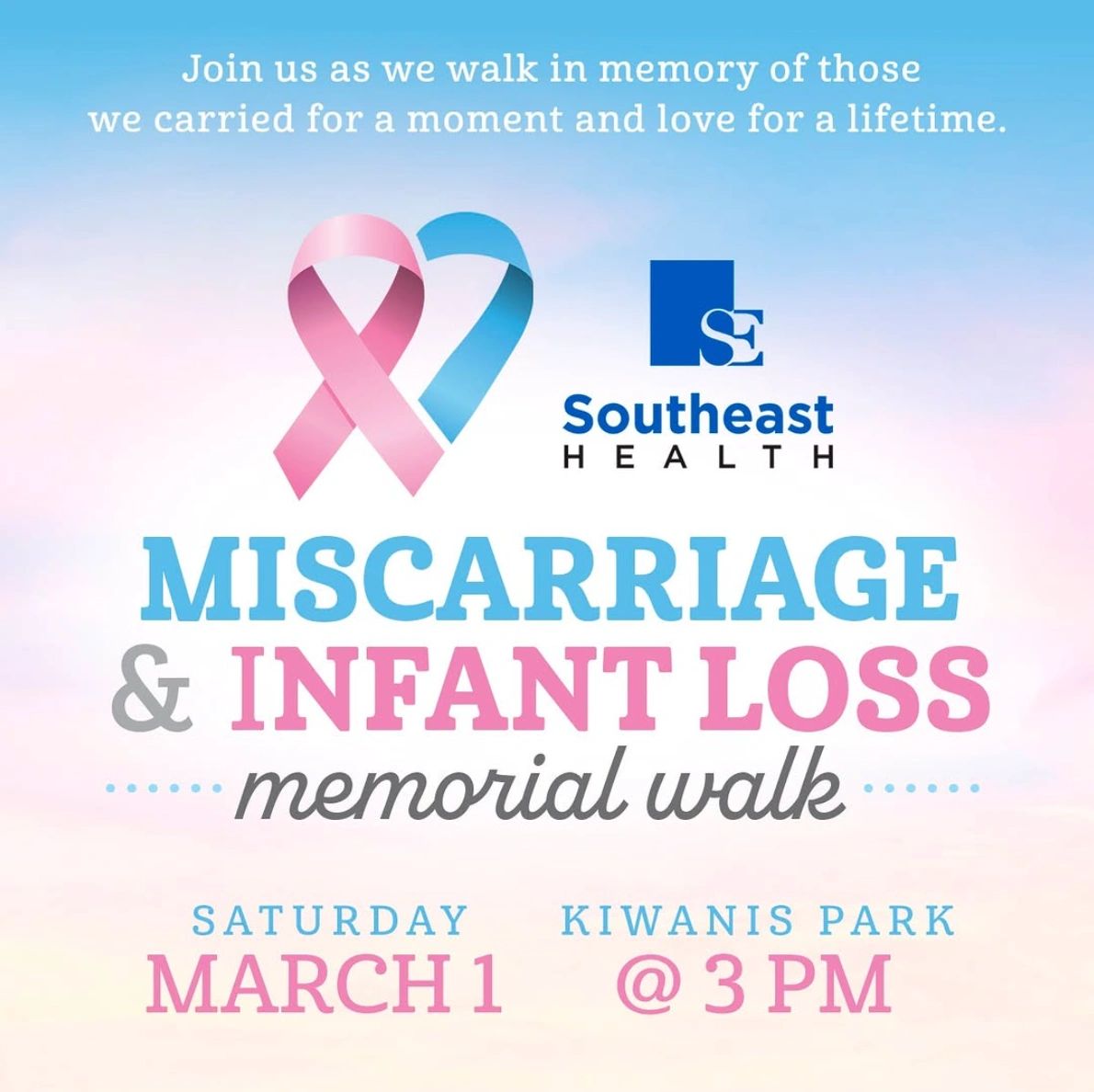 Dothan OBGYN is proud to be a sponsor of the Southeast Health Miscarriage & Infant Loss Memorial Walk. Join us Saturday, March 1st at 3pm at Kiwanis Park. Register below to walk!